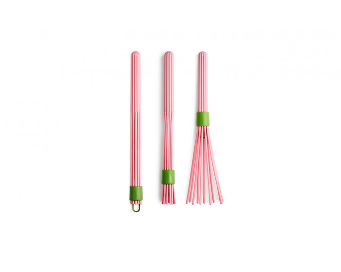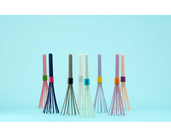 Beater - это венчик, который одновременно является скульптурным, компактным и функциональным. Можно сложить вместе, используя кольцо посередине для экономии места в кухонном ящике. Кольцо также служит в качестве подвесного приспособления для легко доступного хранения на стене. Венчик выпускается в белом, сером, голубом, телесном, лавандовом, розовом, мятном и темно-синем цветах. У каждого цвета также есть контрастный цвет, который дает дизайн жизни и юмора. Используйте Beater, чтобы взбить яйца, соус или вкусные десерты.