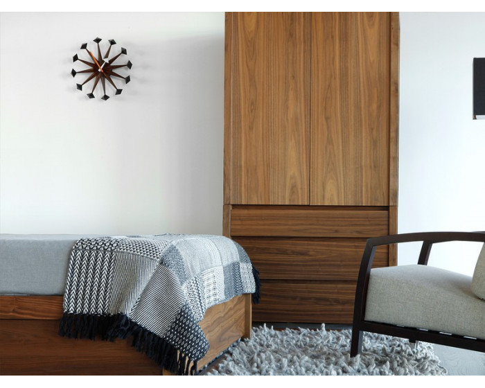 По сей день настенные часы Джорджа Нельсона остаются освежающей альтернативой обычным хронометристам с разнообразием материалов и скульптурных форм. Ярким примером этого являются настенные часы Polygon, созданные из потрясающего сочетания роскошного ореха и алюминия.