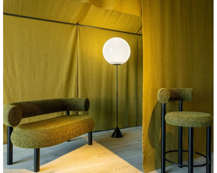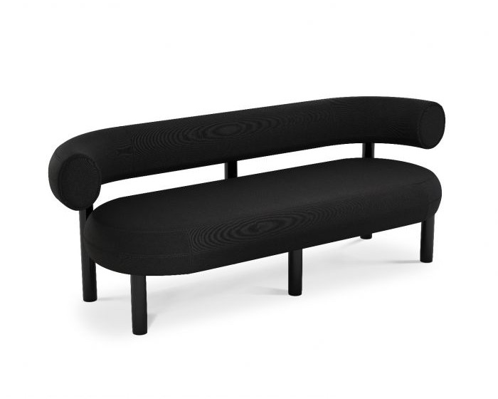 Этот диван спроектирован так, чтобы обнимать тело и позволять сидеть в нескольких положениях, обитый черной тканью Twill от Bute. Жир изготавливается из формованного пенопласта с металлической ножкой, покрытой глянцевым черным лаком, и изготавливается по индивидуальному заказу. Произведено в Европе, вручную обработано и обито опытными мастерами.