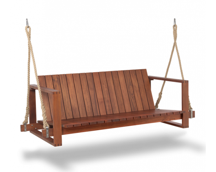 Диван-качели BK13 был разработан в 1959 году Бодилом Кьером как часть серии красиво оформленной, архитектурно вдохновленной мебелью для дома и улицы. Как и в случае с остальной частью этой серии, датский архитектор обратился к кубизму как к источнику вдохновения для точной, обтекаемой формы дивана, изготовленного из твердого тика. Диван-качели, разработанный, чтобы выдерживать суровые погодные условия, также предлагает превосходный комфорт, подвешенный на веревках с узлами для расслабляющего покачивания. Предназначенный для использования в помещении и на улице, он может поставляться с подушками из атмосферостойкой ткани Sunbrella, а также с А-образной рамой для легкого подвешивания.