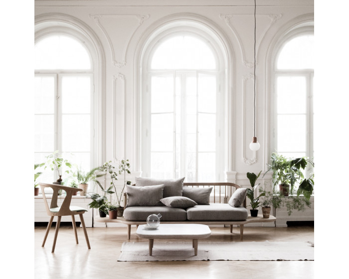 Серия Fly от Space Copenhagen - это салонная коллекция, состоящая из двух диванов, кресла, двух столов и пуфа. Fly - это серия, которая позволяет пользователю сидеть, лежать, отдыхать и отдыхать. В отличие от многих диванов и кресел в истории скандинавского дизайна, Fly не навязывает какую-либо особую позу няньке. Само сиденье оптимизировано для комфорта благодаря свободным подушкам для спины, которые можно расположить в соответствии с собственными потребностями пользователя. Но Fly придерживается традиций в других отношениях; Каркас дивана и кресла с решетчатой спинкой сделан из массива дуба, обработанного белым пигментированным маслом или копченым маслом. Это тип материала и обработки, которые стареют с истинной грацией, только со временем становясь все более красивыми. Space Copenhagen черпает вдохновение в путешествиях за границу, часто в форме атмосферы и настроения. В качестве примера можно привести простую стену на улицах Сохо, Нью-Йорк, чей огорченный вид пробивается в воображение Космического Копенгагена.