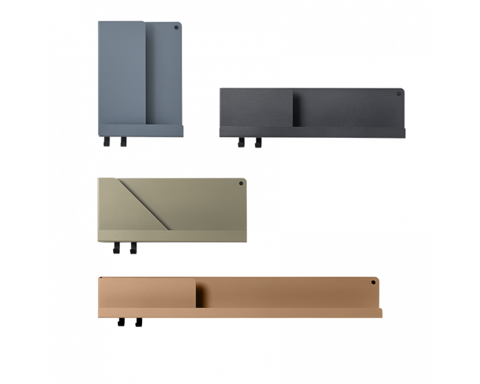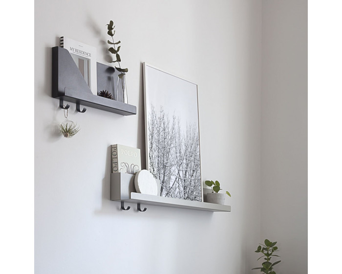 Полки поставляются с двумя крючками и двумя болтами для крепления на стену. Доступные в трёх размерах и трёх цветах. Cкладные полки представляют собой стильный и современный способ хранения любого предмета.