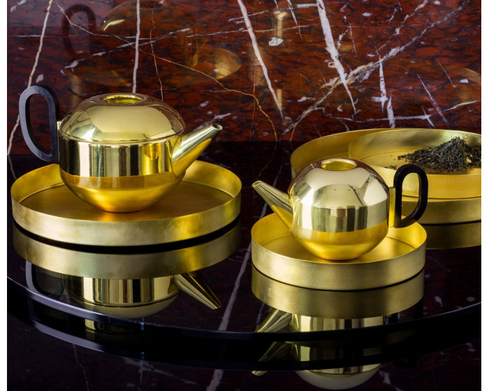 Form Tray Square - Лист из цельной латуни, спрессованный с усиленными ребрами, с логотипом на основании и оставленный без лака. Другие предметы - изготовлены из литого и сварного латунного листа, отполированы, затем смочены в теплой золотой посуде и оставлены без лака. Гравированный логотип на основании.