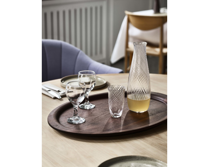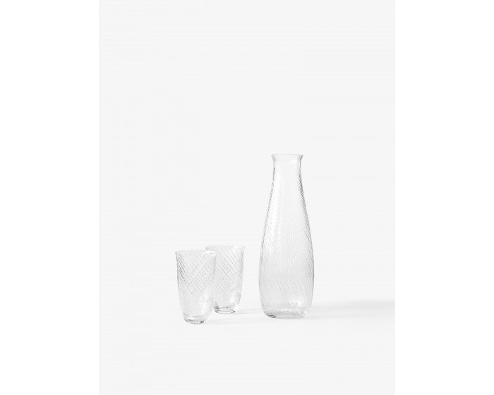 Простий і чітко сучасний на вигляд, цей набір із скла та графина може похвалитися витонченим моментом джакузі, який відображає закручену природу води. Схиляючись до загальної риси азіатського дизайну, окуляри мають невелику губу по краю, що створює природне місце для відпочинку губ. Вони є частиною Collect - кураторської лінії красиво вироблених м'яких меблів та предметів для дому, розроблених Space Copenhagen. Обидві частини доступні як маленькі, так і великі.