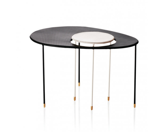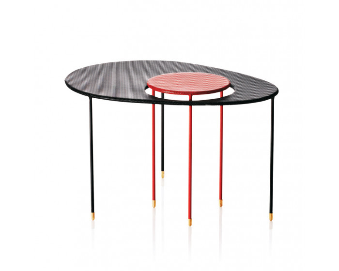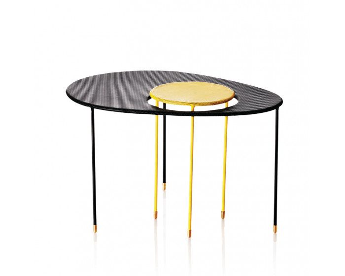 Журнальный столик Kangourou был разработан в 1954 году Матье Матео и характеризуется дизайном Rigitulle, пары перфорированного металлического листа и металлической трубки, которую Матео изобрел пару лет назад. Тени также играют ключевую роль в дизайне Matégot. Журнальный столик Кангуру состоит из двух небольших столиков, меньший из которых находится внутри большего. Когда таблицы отображаются вместе как единое целое, свет проходит сквозь них, отражая тени полумесяца на полу ниже, при стоянии отдельно отражаются две полные луны.