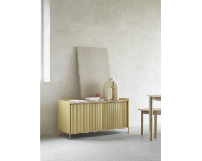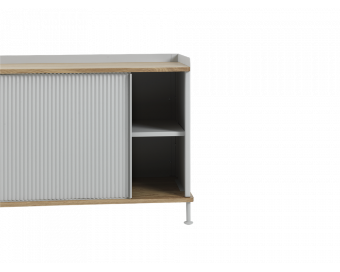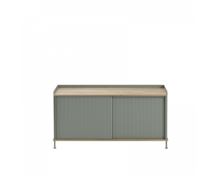 Комод Enfold сочетает в себе промышленную материальность с жилыми объектами, открывая новый взгляд на современные системы хранения. Комод Enfold, изготовленный из лакированной стали, которая мягко обрамляет верх и низ массивным дубом, сочетает в себе холодные и теплые материалы для создания уникального образа в сочетании с ярким современным выражением ребристых стальных дверей. Модель представлена ​​в двух размерах: вертикальном и горизонтальном, оба с регулируемыми полками по обе стороны от середины - горизонтальная полка имеет одну полку по обе стороны от ее середины, которую можно разместить на пяти разных уровнях, а вертикальная - по одной полке на любом из них. сторона его середины должна быть размещена на трех разных уровнях