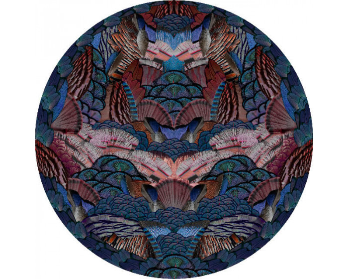 Ковёр «Каллиграфия» имитирует поведение птиц в реальной жизни. Мужчина двигался взад-вперед в ритмичном танце, голубые оттенки его декоративных перьев воротника сияли на солнце. Женщина отвечала, раздувая свои хвостовые перья, которые заканчивались тем, что напоминало грациозные водовороты каллиграфии, и писали ее собственное красочное любовное послание. Этот круглый ковер защищает поэтическую красоту ухаживания птиц, делая его вечным.