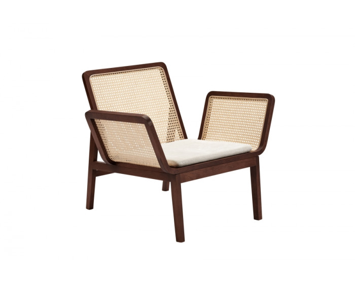 Кресло для отдыха Le Roi изготовлено из массива дуба с инкрустацией из французского ротанга. Коллекция представляет собой минималистичную интерпретацию мебели из ротанга французского колониального периода, объединенную с хорошо известными скандинавскими образцами мебели. Тактильный французский ротанг создает полупрозрачную поверхность, подчеркивающую красоту простой деревянной конструкции.