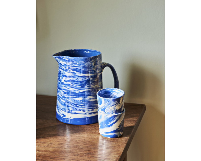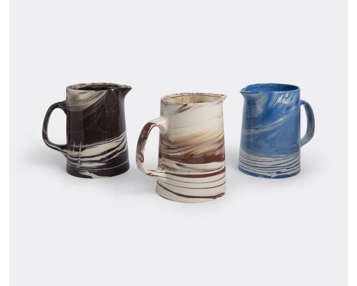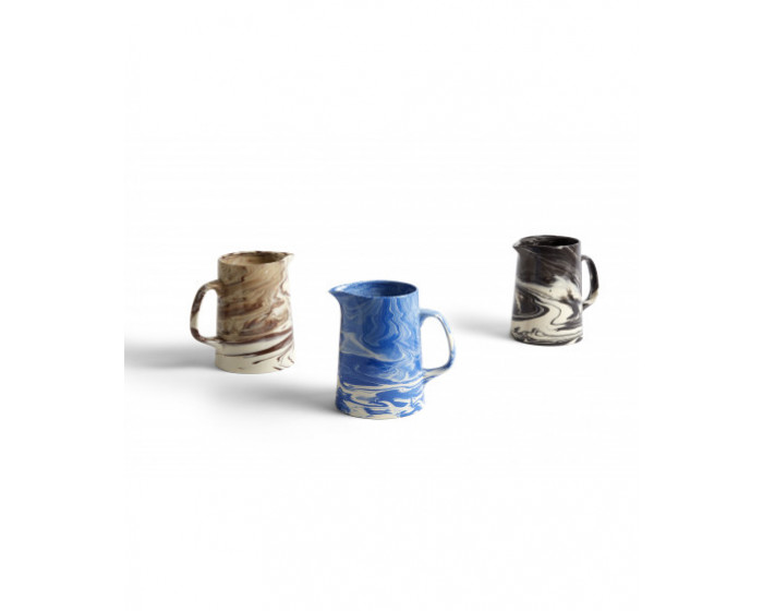 Изготовленный путем смешивания цветного фарфора с белым керамогранитом в форме, каждый мраморный кувшин для молока HAY имеет уникальный закрученный узор, созданный различными глинами, и может использоваться для хранения жидкостей, хранения предметов или просто в качестве украшения.