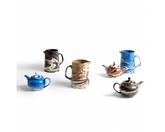 Изготовленный путем смешивания цветного фарфора с белым керамогранитом в форме, каждый мраморный чайник HAY имеет уникальный закрученный узор, созданный различными глинами. Его классическая форма имеет удобную ручку и противокапельный носик, что позволяет легко наливать и использовать.