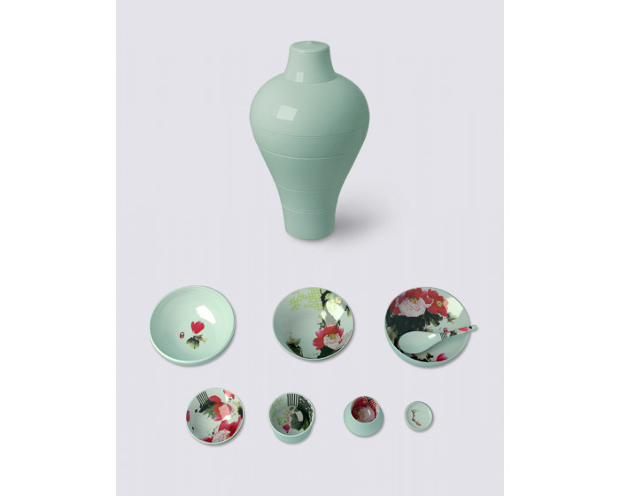 посуды из 7 предметов заключенных в горшке. Все предметы украшены очень