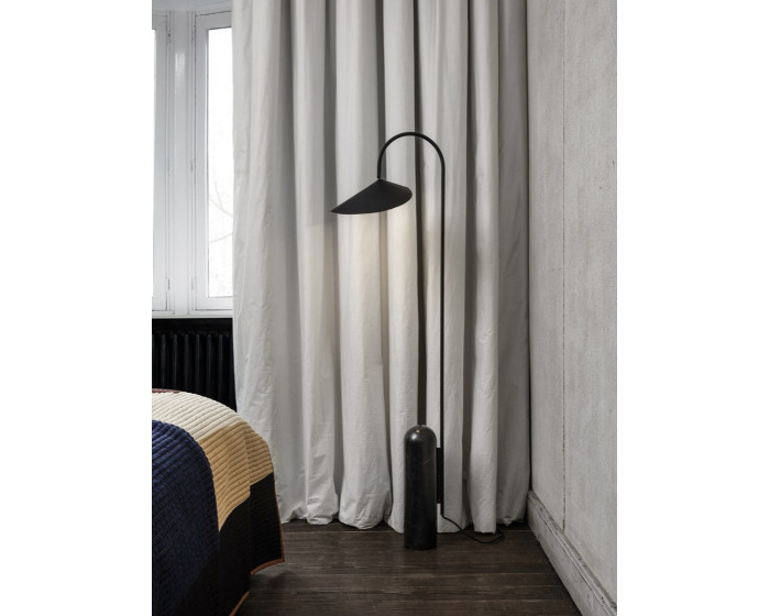 Торшер Arum характеризуется черной цельной мраморной основой в сочетании с абажуром органической формы. Достигая идеального баланса в нецентральной структуре лампы, ножка из черного мрамора противовесит мягкому способу подвешивания абажура к изогнутой металлической арке в форме листа. Благодаря матовому, не совсем белому внутри абажура лампа дает мягкий, равномерно распределенный свет, а абажур можно регулировать для обеспечения оптимальных условий освещения в любых ситуациях.