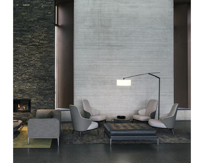 Напольный светильник, который также действует как потолочный светильник. Дизайн - Хорди Виларделл. Благодаря небольшому натяжному поясу, расположенному в нижней части шторы с алюминиевым утком, который также служит переключателем, штору можно перемещать вправо или влево, вверх и вниз, оставаясь всегда параллельно полу. В кабеле есть диммер. Доступен в хромированном и матовом никеле.