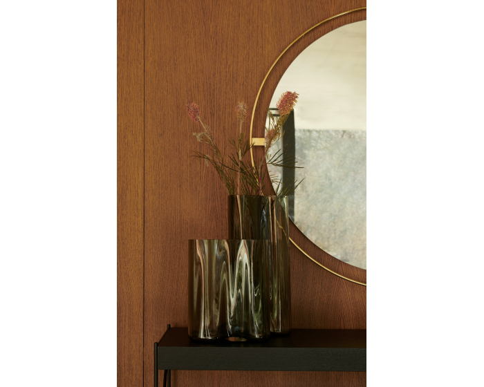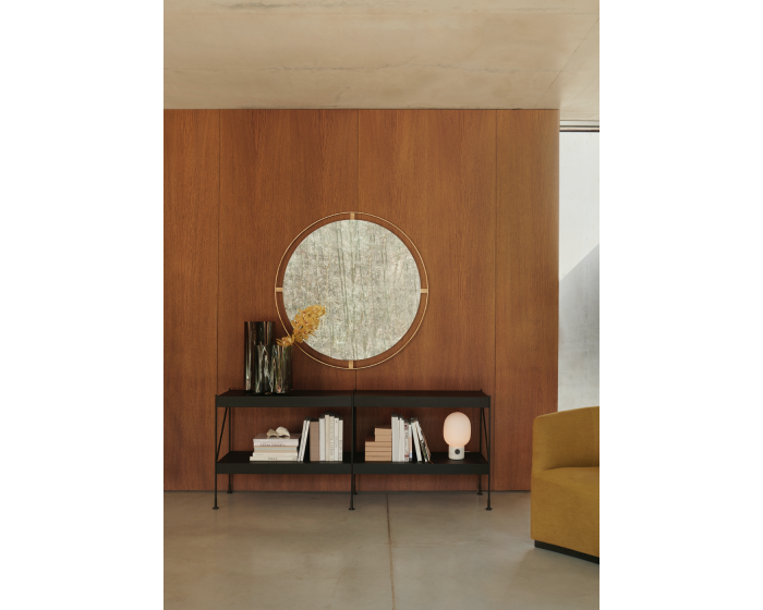 Зеркало не просто чисто функциональное: с древних времен они отражали стиль периода - обрамленный витиеватыми барочными растениями или готическими арками и простыми линиями движения Баухауза. Последняя итерация МЕНЮ переносит основы зеркала в современную эпоху, но с мифологическим поворотом, на который ссылается его название: в греческой мифологии Нимб был сияющим облаком или короной, которая часто окружала божество, когда находился на Земле. Студия дизайна Krøyer-Sætter-Lassen смотрела на то, как оформляется картина или картина, чтобы изменить общее выражение произведения искусства. Круглое зеркало, окруженное галоидным бронзовым латунным кольцом, удерживаемое на месте декоративными винтами, создает ощущение света и пространства в комнате.