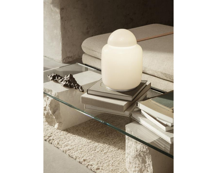 Настольная лампа Bell, вдохновленная винтажными стеклянными лампами 70-х годов, освещает ваш дом мягким рассеянным светом. Полностью изготовленная из опалового стекла с гладкой глянцевой поверхностью, лампа состоит из двух простых геометрических форм, сбалансированных на хромированном основании. Используйте его как декоративную лампу в темном углу или на полке, чтобы осветить любимые книги.