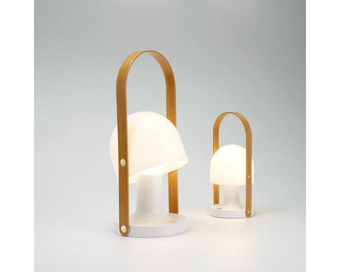 FollowMe by Marset - это перезаряжаемая и переносная настольная лампа, которая очаровывает своим приятным дизайном и освещает террасы, балконы и другие помещения без доступа к электрическим розеткам. Лампа FollowMe, разработанная Инмой Бермудес, имеет изогнутую деревянную ручку, качающийся рассеиватель и три уровня теплого светодиодного освещения. FollowMe поставляется с зарядным кабелем USB, уровень яркости которого можно регулировать с помощью медного переключателя питания, расположенного на основании. В 2016 году лампа FollowMe была отмечена престижной премией Red Dot Award.