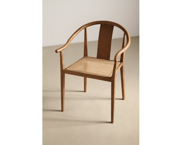 Стул Shanghai выполнен из гнутого паром каркаса из массива ясеня и сиденья из натурального французского ротанга. Спинка и подлокотник играют центральную роль в конструкции кресла, придавая ему культовую форму и прочную поддержку. Высокая спинка обеспечивает удобную поддержку, а подлокотник легко облегает корпус кресла. Со временем использование французского ротанга повлияет на твердость, так как это натуральный материал.
