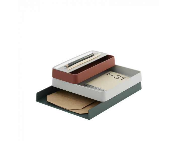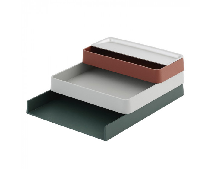 Серія Arrange Desktop, розроблена компанією BIG-GAME, є практичним конвертованим органайзером для робочого столу, деталі якого ви можете використовувати як складені один на одного різними способами, так і як окремі лотки та коробки. Найбільша одиниця робить ідеальний лоток для листів, тоді як середній лоток працює для зберігання всіх видів канцелярського приладдя. Наприклад, алюмінієва кришка найменшого лотка служить місцем для зберігання ручок або степлерів. Виготовлений із 100% переробленого пластику, серія Arrange Desktop також є екологічно чистою альтернативою для зберігання канцелярського приладдя - а чому б і не інших дрібних предметів навколо будинку.