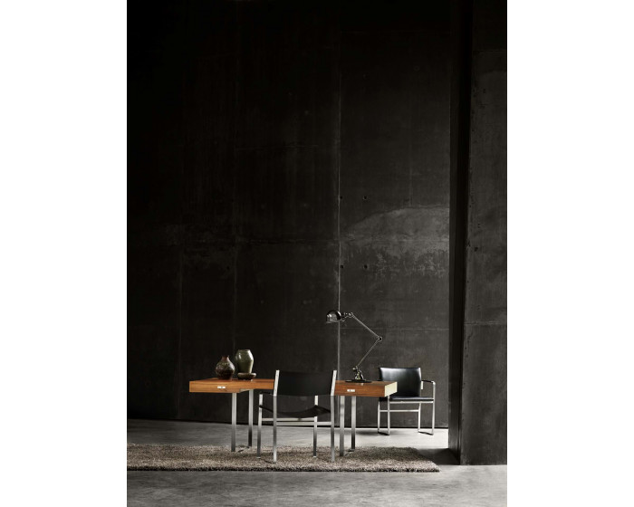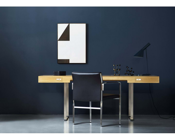 Письменный стол Ханса Дж. Вегнера CH110 во многом отличается от его обычного стиля деревянной мебели. Созданный в 1970 году, он был частью эксклюзивной офисной концепции. В этой серии представлены некоторые из самых характерных элементов мебели Wegner со стальным каркасом.