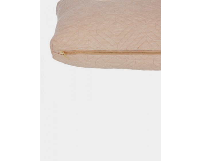 имеют высокий процент шерсти. В материал вязался геометрический рисунок с 3D-эффектом, придающий подушке
