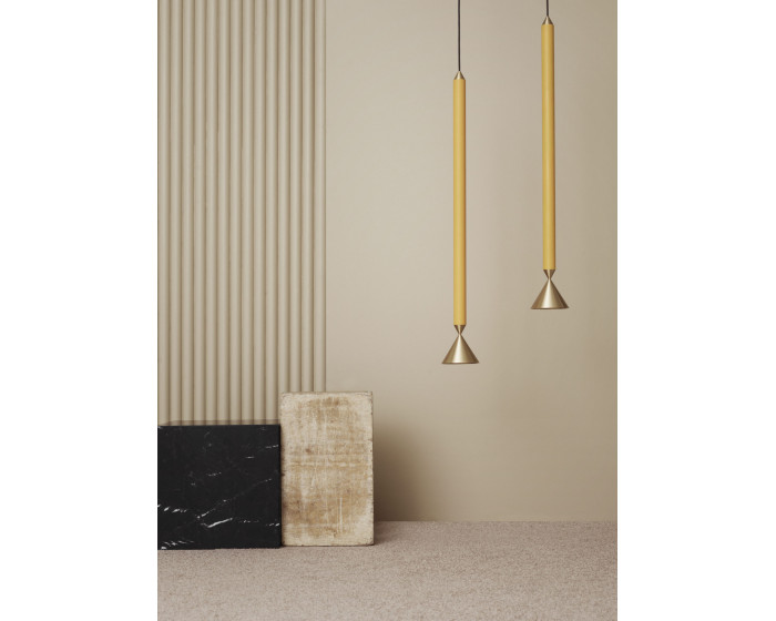 Apollo - это лампа, изготовленная из цельного куска латуни или алюминия, обработанного механической обработкой, с составом, напоминающим массу и вес. Его конические формы уравновешивают друг друга, как вращающиеся гироскопы, подчеркивая динамическую направленную вниз силу толчка. Лампа с действительно усиленным присутствием материала, с намеренно необработанными поверхностями. Семейство Аполлонов бывает разных цветов, которые можно использовать по отдельности или подвешивать на разной высоте как групповое созвездие. Новинка этого семейства - характерный торшер Apollo 180 из лакированного или анодированного алюминия черного цвета. Поворачивающиеся вверх конические формы дают непрямой свет.