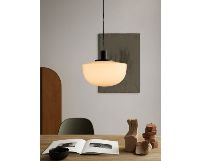 Bank - это полукруглый светильник для дома, изготовленный из опалового или дымового стекла, и алюминиевой фурнитуры с порошковым покрытием черного цвета. Матовое стекло мягко рассеивает 360-градусный свет от любой лампы E26, создавая атмосферу, и обеспечивая отличное освещение. Сочетание непрозрачного стекла и тонкого металла придает продукту стойкость, тактильность и долговечность.