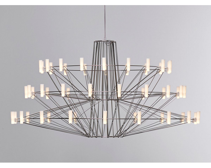 Подвесной светильник Coppélia, разработанный Арихиро Мияке для компании Moooi, выполнен с рамой из нержавеющей стали и кронштейном из поликарбоната.