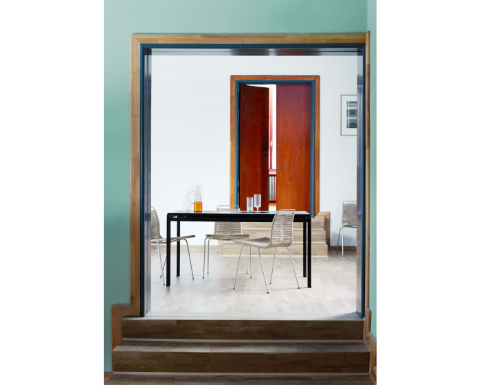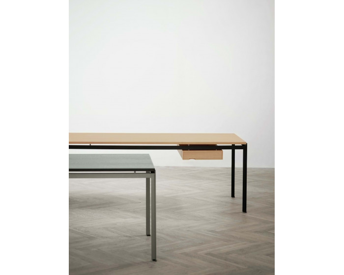 Пол Кьерхольм разработал стол профессора PK52, когда Академии требовалось несколько столов для преподавателей и студентов. Опираясь на свой столярный опыт, Кьерхольм разработал новую структуру стола, которая продемонстрировала его мастерство работы со сталью и деревом. Металлические наконечники отделяют сталь от дерева, что придает этому столу динамичный и легкий вид. Кроме того, столешница двусторонняя, что позволяет пользователю работать с обеих сторон - или использовать одну сторону для работы, а другую - для еды или развлечений. Стол профессора PK52 также доступен в более компактном размере, как стол для студентов PK52A. Дополнительный ящик на обоих столах предлагает элегантное место для хранения, и оба могут легко использоваться как обеденные столы.