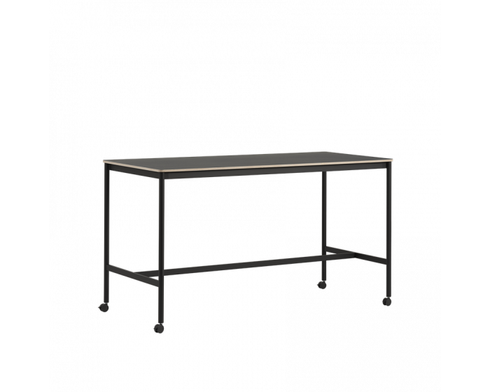 Рама из экструдированного алюминия с ножками и подрамником из стали. Столешница из фанеры с поверхностью из ламината, линолеума или дубового шпона с кромкой из фанеры или ДСП с поверхностью из ламината и кромкой из АБС. На заказ: ламинат с кромкой из АБС или фанеры черного, или белого цвета. Линолеум с кромкой из фанеры черного цвета. Основания доступны в черном или белом цвете с соответствующими колесиками.