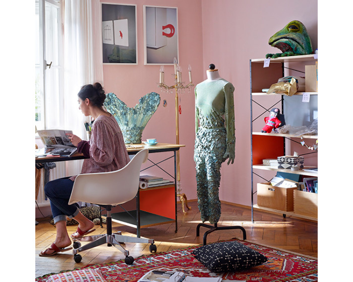 Чарльз и Рэй Имз спроектировали Eames Storage Unit (ESU) и Eames Desk Unit (EDU) в 1949 году. Новаторская, легкая структура мебели была основана на принципах промышленного производства, как и знаменитый Eames House. В соответствии с духом 1940-х и 50-х годов современная цветовая палитра EDU и ESU была разработана совместно с Eames Office и голландским дизайнером Хеллой Йонгериус.