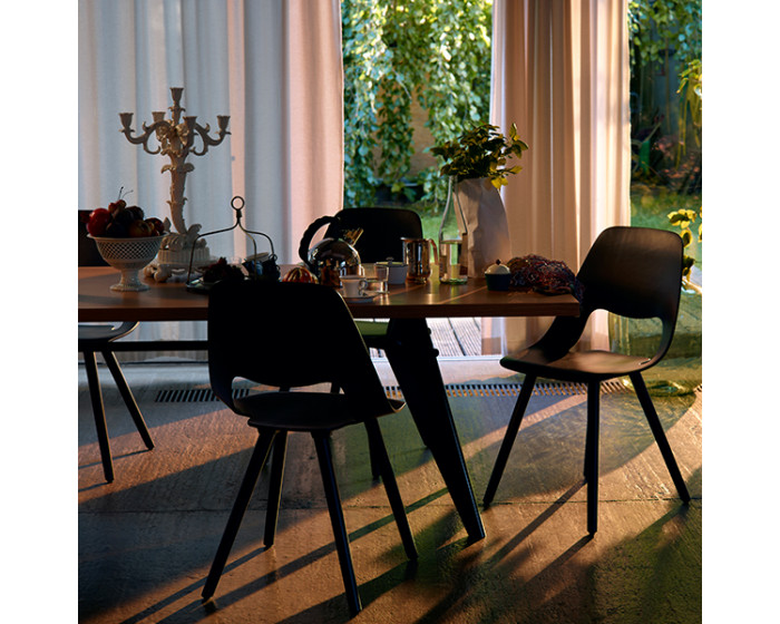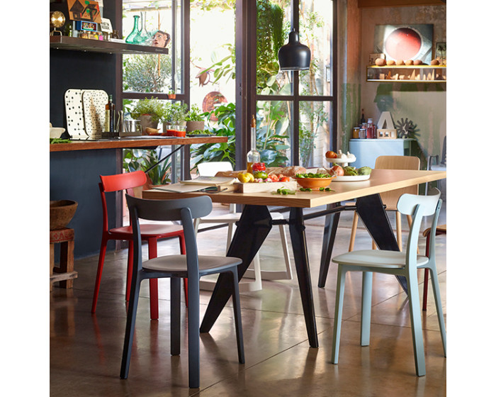 Стол EM Table от Vitra - это обтекаемый стол, который был разработан французским инженером и дизайнером Жаном Пруве для модернистского проекта сборных домов La Maison Tropicale в 1950 году. Стальная рама EM Table с порошковым покрытием и диагональные ножки соответствуют структурным принципам архитектуры и инженерии . Простая прямоугольная столешница доступна из массива дерева или ламината. EM Table - это вечная классика в качестве обеденного или конференц-стола, а его форма и цвет гармонично сочетаются со стульями Standard Prouvé.