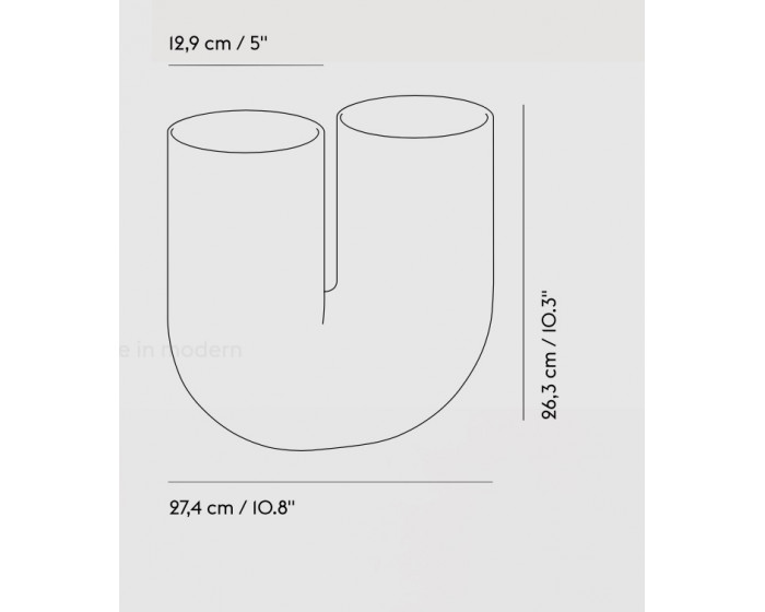 Ваза Kink надає сучасну форму архетипній вазі для квітів завдяки поєднанню традиційного майстерності та грайливої мови дизайну. Завдяки своєму подвійному відкриванню, Кінк-ваза додає приміщення скульптурного настрою, навіть коли він не використовується. Дизайн виконаний з порцеляни, яка була глазурована з внутрішньої сторони для вишуканого дотику.