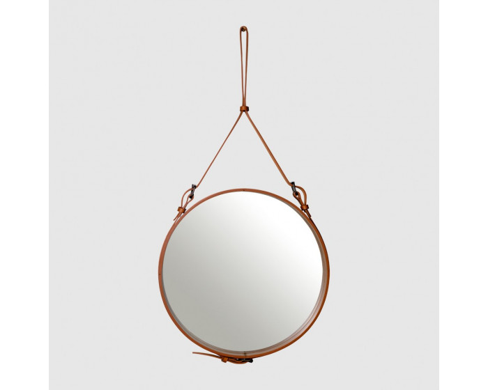 В 1950 году Jacques Adnet сформировал партнерство со знаменитым французским модным домом, где он разработал коллекцию сдержанной, но сладострастной кожаной мебели и аксессуаров для интерьера. Известный как новаторский мыслитель, Adnet был одним из первых дизайнеров, сочетающих кожу со стеклом. Соответственно, он разработал элегантное, своеобразное круглое кожаное зеркало с контурным вдохновением - Mirror Adnet Circulaire. Помимо замечательных кожаных и полированных деталей из латуни, зеркало в трех размерах также уникально, поскольку ремешок, удерживающий зеркало, прямо пропорционален его размерности.
