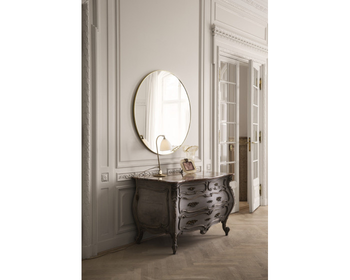 Зеркало GUBI Mirror не только дает комнате дополнительную глубину, свет и создает ощущение дополнительного измерения, но и объединяет интерьер. Благодаря своим значительным размерам зеркало GUBI Mirror становится основным элементом декора и становится справа от него, когда ему позволяют доминировать на стене. В то же время округлая форма с элегантной латунной кромкой смягчает и придает теплоту атмосфере.